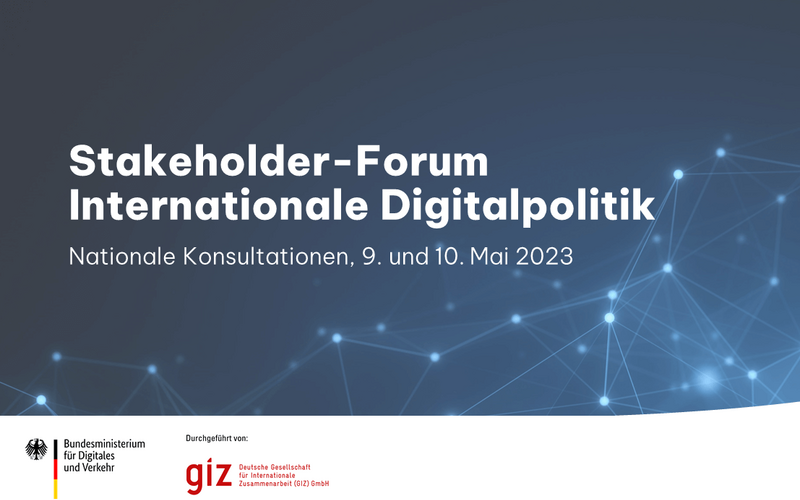 The German Federal Ministry for Digital and Transport (BMDV) initiated the consultation process on Germany's strategy for international digital policy in February 2023. On 9 and 10 May, specific topics of interest were discussed in greater detail during dedicated consultations with German stakeholders.
