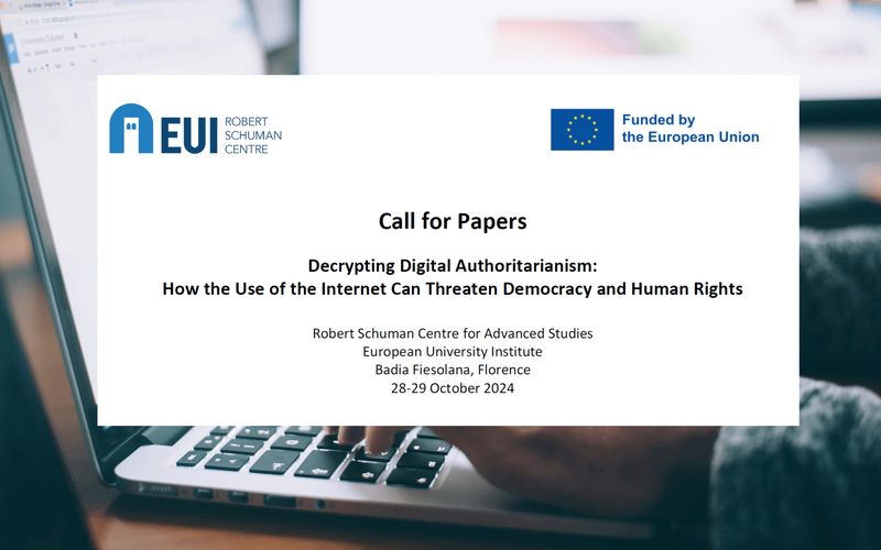 Are you passionate about defending democracy and human rights in the digital age? The Robert Schuman Centre for Advanced Studies at the European University Institute invites you to participate in their call for papers on "Decrypting Digital Authoritarianism: How the Use of the Internet Can Threaten Democracy and Human Rights." The papers will inform a conference on the topic, taking place on 28 and 29 October 2024 in Florence. It aims to shed light on the concerning rise of digital authoritarianism around the world.